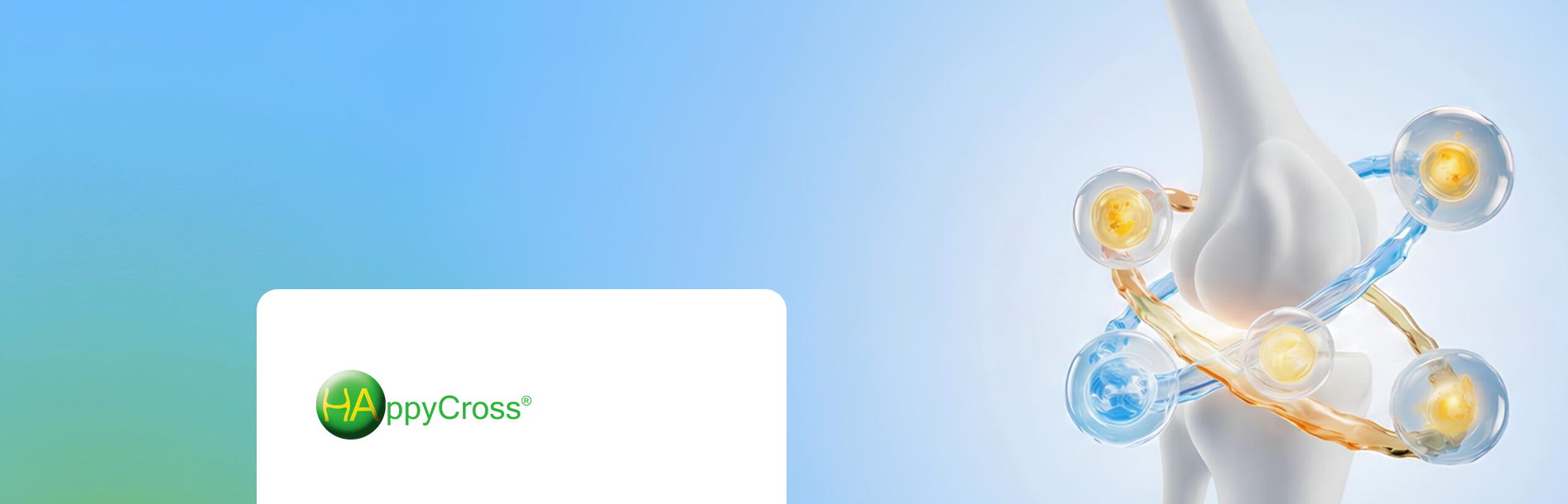 Hyalüronik asit ve Mannitol içeriği ile tek enjeksiyonda 2. nesil viskosuplement! HappyCross, eklem sıvınızın performansını artırmak için tasarlanmış, yüksek konsantrasyonda, son derece viskoz ve elastik hyalüronik asitten oluşan ikinci nesil bir viskosuplementtir. HappyCross'un dikkat çekici viskoelastik özellikleri, benzersiz ve patentli bir çapraz bağlama işleminden kaynaklanır.